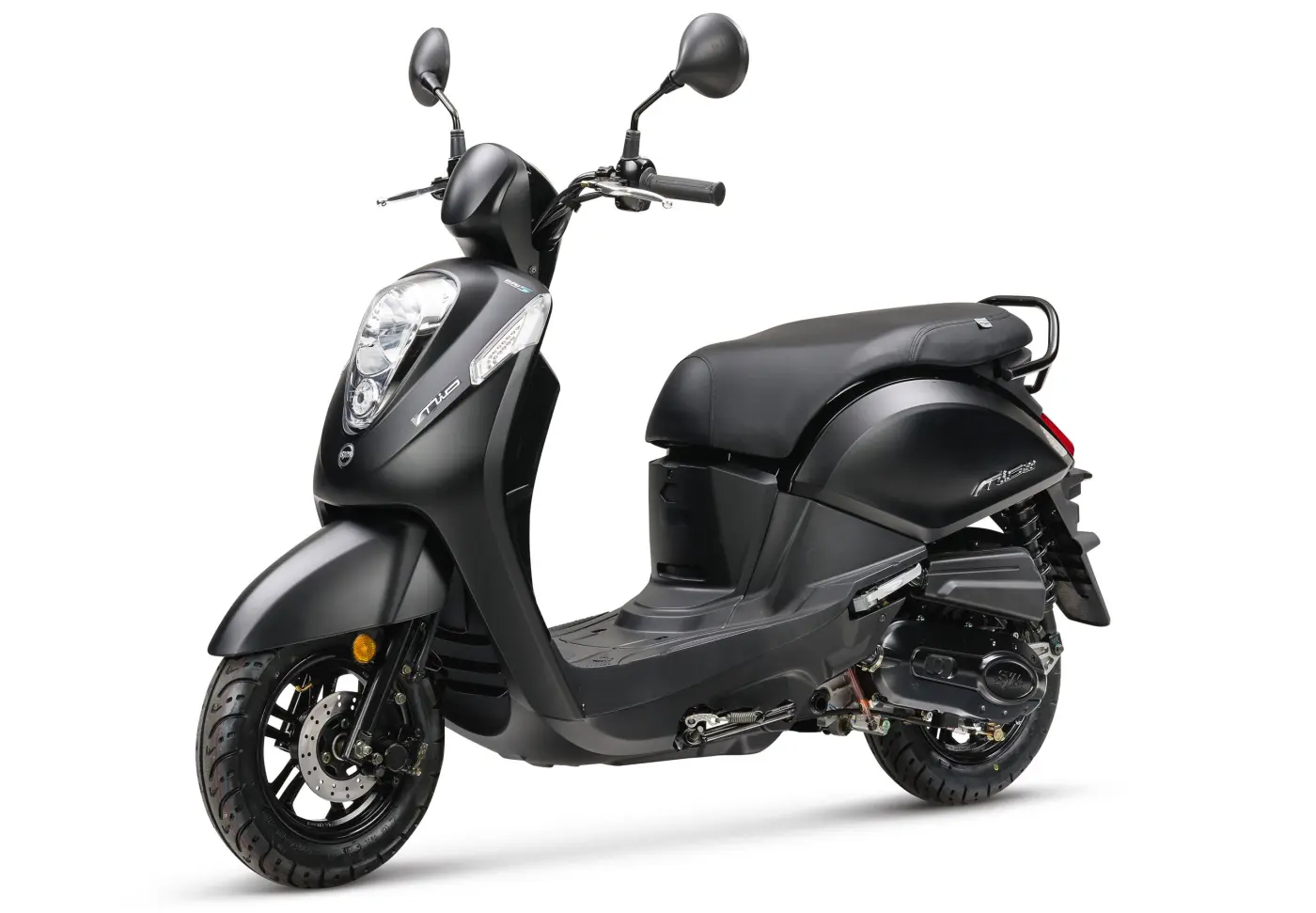 Der Komfort kommt beim SYM Mio 50 keineswegs zu kurz. Die bequeme Sitzbank bietet auch auf längeren Fahrten durch die City exzellenten Halt, während hochwertige Details wie die moderne LED-Beleuchtung für optimale Sichtbarkeit und einen edlen Look sorgen. Unter der Sitzbank verbirgt sich zudem ein praktischer Stauraum für den Helm oder kleine Einkäufe, was den Roller zu einem idealen Begleiter für die Schule, den Weg zur Ausbildung oder das Treffen mit Freunden im Café macht.