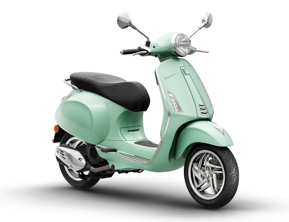 Neue 12-Zoll-Felgen im Fünf-Speichen-Look, eine schlankere Frontpartie und hochwertige Sitzbank-Materialien unterstreichen den legendären Retro-Charme und machen diese Vespa zum absoluten Blickfang.