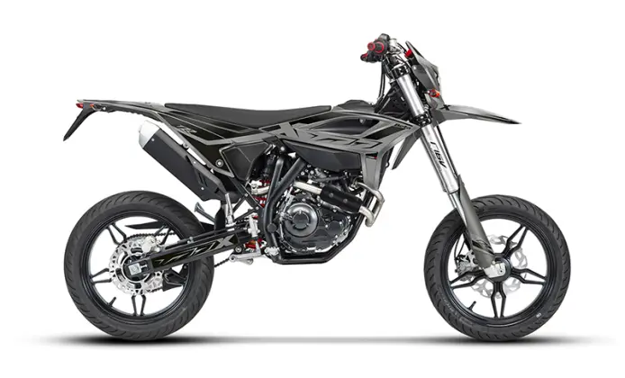 - Schwarze Speichenfelgen: Die edlen Supermoto-Felgen unterstreichen den kompromisslosen Look und sorgen für die nötige Stabilität auf dem Asphalt.